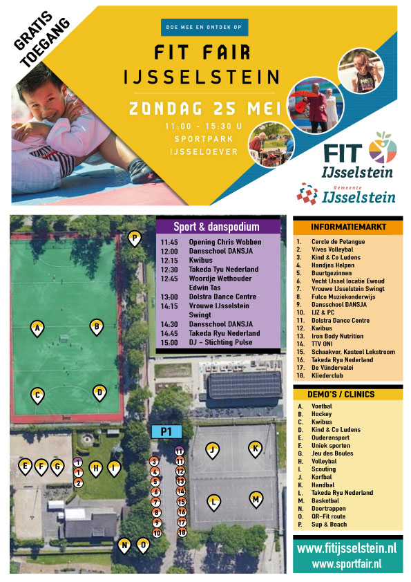Maak kennis met sport, welzijn, cultuur en gezelligheid in IJsselstein! Kom naar de FIT Fair op zondag 31 mei 2026 en ontdek meer dan 30 verenigingen en (zorg)organisaties. Doe mee aan demo’s, clinics en activiteiten voor jong & oud.